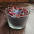 Die Kerze ist mit 2 Dochten versehen und hat einen Durchmesser von etwa 8,5 cm, das Glas ein Volumen von ca. 230 ml